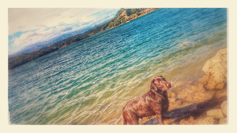Cleo de paseo con su palo